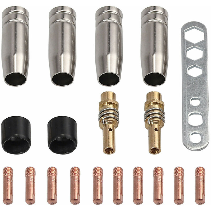 Questi kit di materiali di consumo sono utilizzati specialmente per la saldatura con torcia 15AK. Specifiche: Materiale: bachelite/acciaio/ rame/ottone Dimensione articolo: Ugello conduttivo: 24 * 6 mm / 0,94 * 0,24 pollici Manicotto isolante: 18 * 16 mm / 0,71 * 0,63 pollici Biella: 41 * 13 mm / 1,61 * 0,51 pollici Ugello torcia: 53 * 17 mm / 2,09 * 0,67 pollici Peso del pacchetto: 210 g / 7,41 once Formato del pacchetto: 150 * 100 * 30 mm / 5,91 * 3,94 * 1,18 pollici 4 * Ugelli per torcia di saldatura 2 * Manicotti isolanti 2 * Bielle 10 * Ugelli conduttivi da 0,8 mm 1 * Altro strumento