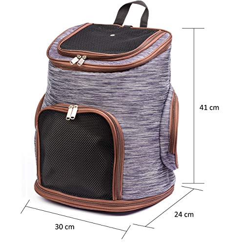 Migosset Borsa per Cani e Gatti - Zaino Porta Cane e Gatto Indossabile Resistente - Trasportino con Tasca Laterale, con Finestra a Rete, Apertura Superiore e Fondo Removibile per Pulire - 30x24x41 cm