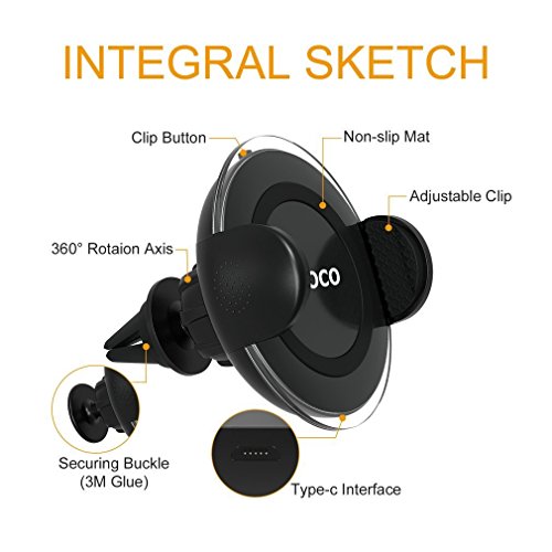 MIGVELA Caricatore Wireless Auto rapido, Caricabatteria Wireless Auto, Universale Supporto Griglia di Ventilazione per Galaxy Note 8/5 S8/S8 Plus S7/S7 Edge S6 Edge Plus, iPhone X / 8/8 Plus