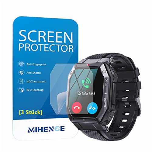 MIHENCE Pellicola protettiva compatibile con smartwatch LEMFO 1,85", pellicola protettiva in PET HD, compatibile con JELLOO 1,85", smartwatch/militare 1,85", smartwatch da uomo K55 Watch [3 pezzi]