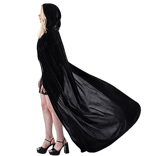 MiiDD Mantello con Cappuccio Lungo in Velluto,Costume Unisex di Halloween Carnevale Natale Capo Masquerade Costume Strega Wicca Vampiro(Nero,XL)