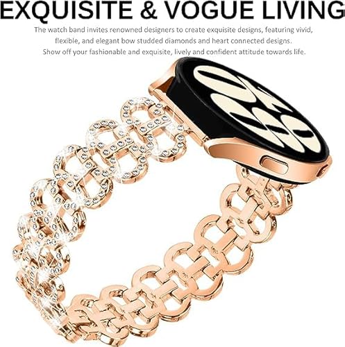 Miimall Cinturino per Galaxy Watch 4/5/6 40mm 44mm, Pro 45mm, Classic 47mm 46mm 43mm 42mm, in Lega di zinco, Multi-Anello con Strass, Strap per Galaxy Watch 4/5/6/Pro/Classic, Oro Rosa