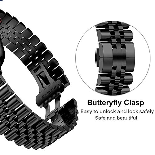 Miimall Cinturino di ricambio compatibile con Apple Watch da 49 mm, 45 mm, 44 mm, 42 mm, in metallo con chiusura a farfalla, per Apple Watch Series 8/7/6/SE/5/4/3/2/1, colore nero