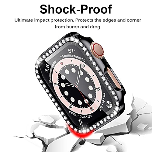 Miimall Compatibile con Apple Watch Series 6SE54 40 mm Custodia con pellicola protettiva in vetro, strass glitter in policarbonato rigido, antigraffio, pellicola protettiva per iWatch Serie 54,