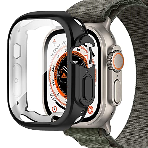 Miimall Compatibile con custodia per Apple Watch Ultra 49 mm, morbido paraurti in TPU con pellicola protettiva, antiurto, custodia protettiva completa per Apple Watch Series 8 Ultra 49 mm-nero