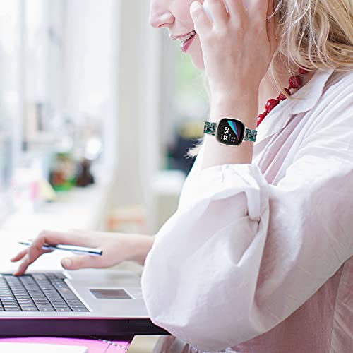 Miimall Compatibile con Fitbit Versa 3/Sense, cinturino di ricambio leggero in resina di alta qualità con doppia fibbia deployante in acciaio inox, cinturino per Fitbit Versa 3/Sense-verde viso