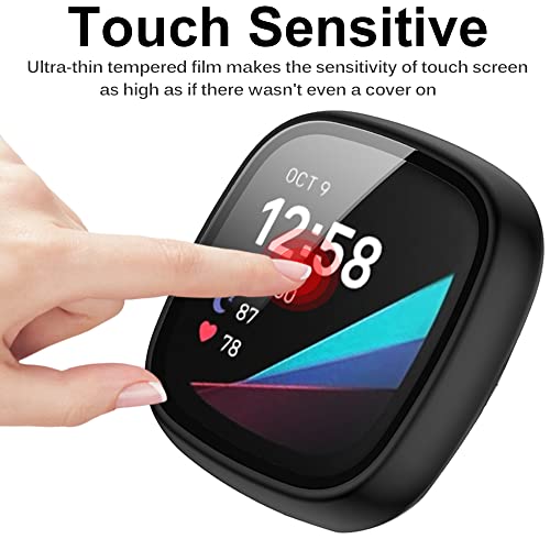 Design 2 in 1: custodia rigida in policarbonato + pellicola protettiva in vetro temperato, questa custodia copre tutta la parte anteriore e curva dell'iWatch e offre una protezione completa per il tuo Fitbit Versa 3/Sense da graffi, cadute e urti.