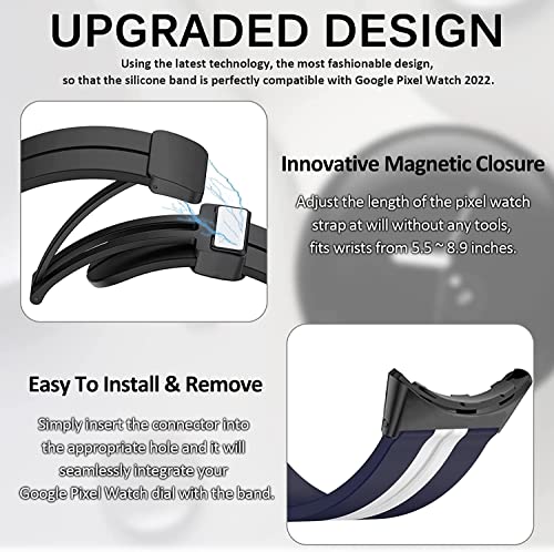 Miimall Compatibile con Google Pixel Watch 2/1 Cinturino con Magnete, Cinturino di ricambio in Silicone con Forte Chiusura Magnetica, Bracciali bicolore per Google Pixel Watch 2/1, Blu Bianco