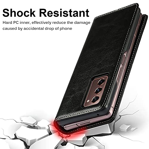 Miimall Compatibile con Samsung Galaxy Z Fold 2 Custodia protettiva in pelle PU, [porta scheda][supporto] Anti-Shock Anti-graffio Custodia per Samsung Galaxy Z Fold2 - Nero
