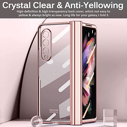 Miimall Compatibile con Samsung Galaxy Z Fold 3, [Protezione cerniera] [Protezione schermo integrata] Copertura PC trasparente leggera antiurto copertura completa cerniera copertura per Z Fold 3-Rosa