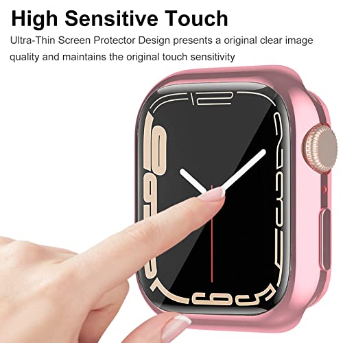 Miimall Custodia per Apple Watch Series 8/Series 7 da 45 mm con protezione schermo HD, morbido TPU Bumper antigraffio anti-goccia copertura completa copertura protettiva per Apple Watch Series 8/Series 7-Rose Pink