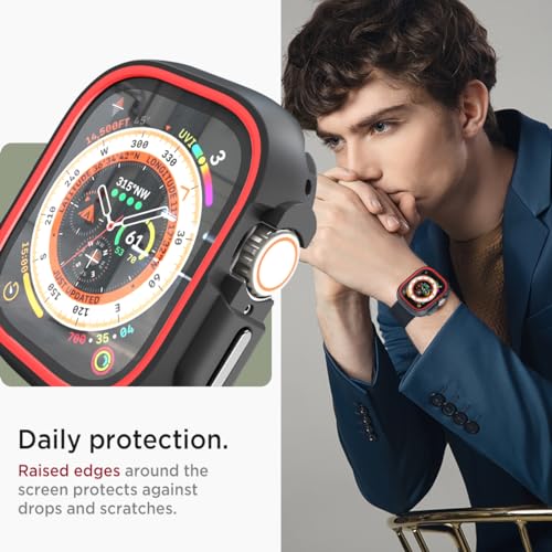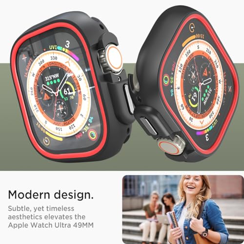 Miimall Custodia Compatibile con Apple Watch Series Ultra2/Ultra 49mm, Cover Antiurto in PC e TPU, Case di Ricambio Moderno, Copertura Anti-Graffio per Apple Watch 49mm Ultra2/Ultra, Nero e Rosso