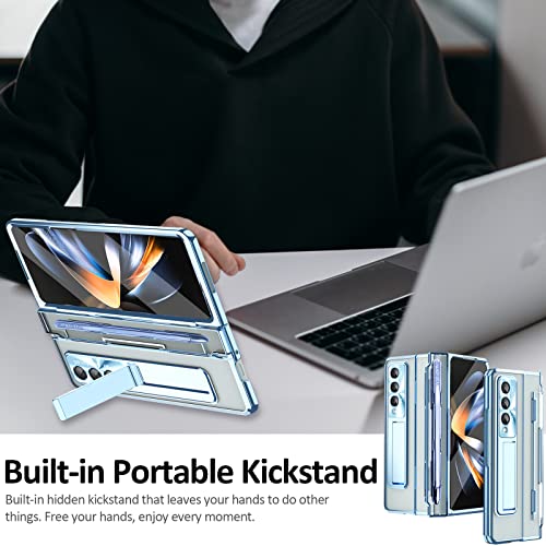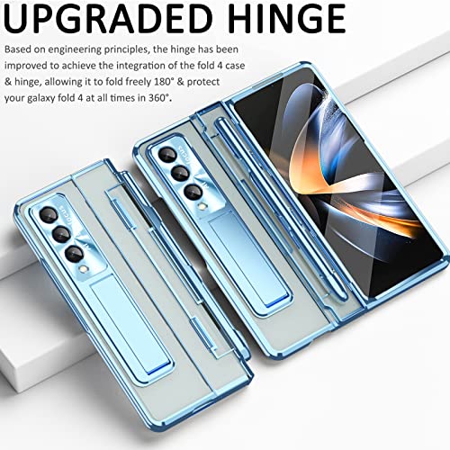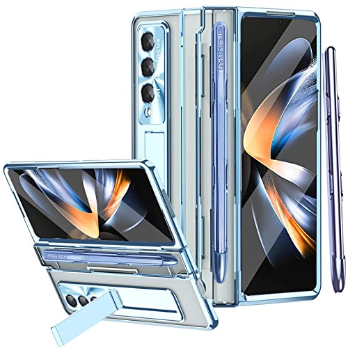 Miimall Custodia compatibile con Samsung Galaxy Z Fold 4 con S Pen, custodia trasparente in PC con supporto per penna + pellicola protettiva + supporto per Samsung Galaxy Z Fold 4 5G blu