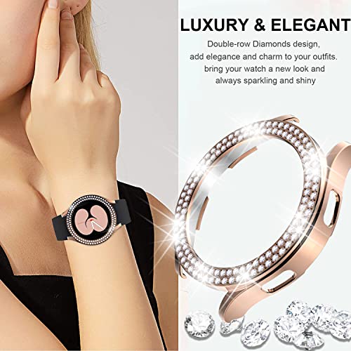 Miimall Custodia compatibile con Samsung Galaxy Watch Active 4 40 mm/44 mm, doppia fila di cristallo Bling strass telaio rigido PC antiurto Custodia protettiva per Galaxy Watch Active 4-Rose Gold