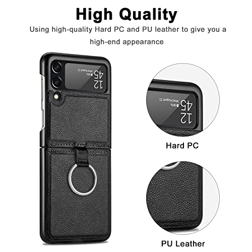 Miimall Custodia in pelle compatibile con Samsung Galaxy Z Flip 3 2021, ultra sottile in pelle PU antiurto rigida con anello per Samsung Galaxy Z Flip 3, colore: Nero