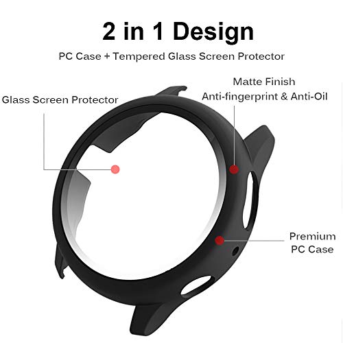 Miimall per Samsung Galaxy Watch Active 2 44mm Pellicola salvaschermo in vetro temperato, [Full Cover] Custodia protettiva antiurto anti-graffio per PC per Galaxy Watch Active 2 44mm -Nero