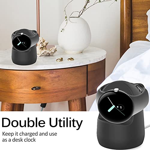 Miimall Stazione di ricarica compatibile con Google Pixel Watch, supporto in morbido silicone, ricarica sicura e non scivola, supporto di ricarica per Google Pixel Watch LTE/WiFi 2022, nero