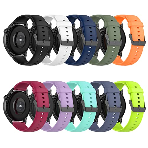 MIJOBS 10 Pezzi Cinturini Compatibile con Huawei Watch GT3(46mm)/GT2(46mm)/GT 2Pro/GT 2e/Huawei Watch 3/Huawei Watch 3Pro Orologio Intelligente Cinturino di Ricambio, per 22mm Cinturini in Silicone