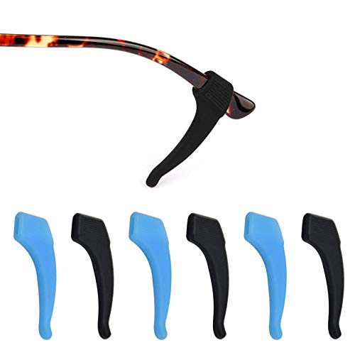 Mikihat 5 Paia Antiscivolo Occhiali da Vista, Ferma Occhiali, Elastico Fermaocchiali Antiscivolo, Gancio Ferma Occhiali in Silicone per Occhiali da Sole Occhiali da Lettura Occhiali (Nero e blu)