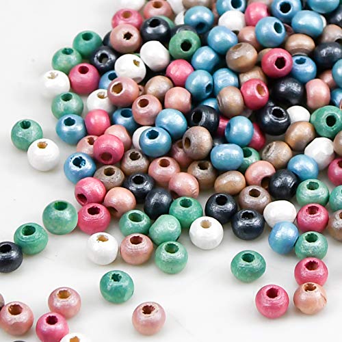 Mikihat 300 Pezzi 6mm Perline Beads, Perline Legno Colorate, Perline Legno Multicolore, Perline Rotonde Naturali, Pony Perline per Gioielli Fai da te Braccialetti Collane