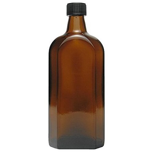 Meplat, classica bottiglia da farmacia in vetro marrone, per diversi liquidi come essenze, alcol, ecc. - con tappo a vite DIN 28 nero con guarnizione