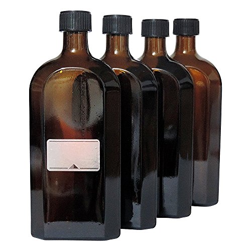 Mikken - 4 Bottiglie mediche in Vetro Marrone da Farmacista con Etichette da 500 ml