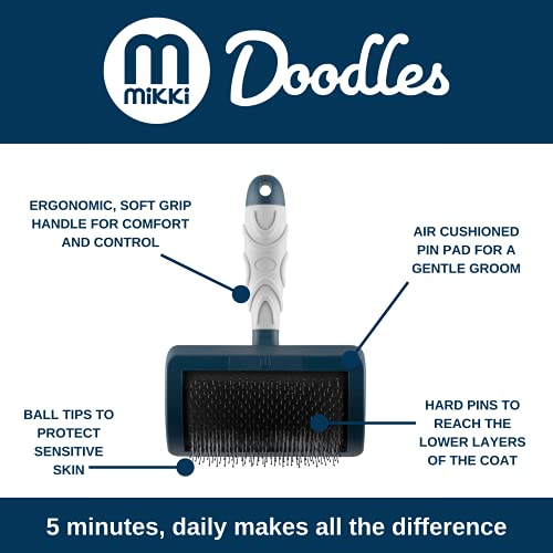 Mikki Spazzola per la toelettatura del cane, con testa curva, strumento per spargimento, per cacapo, labradoodles, cavapoos e scarabocchi dorati, blu, grigio, XS