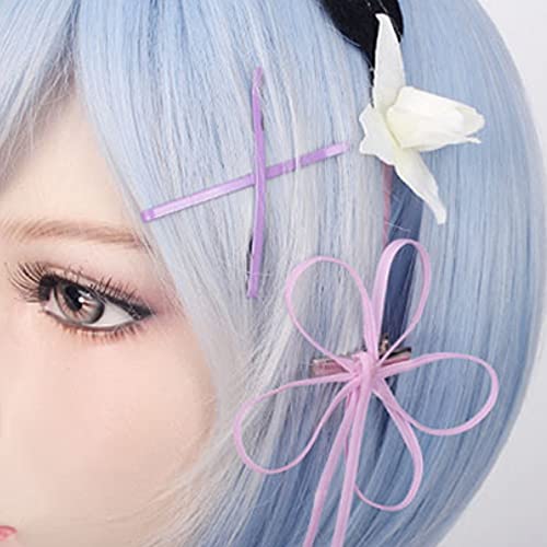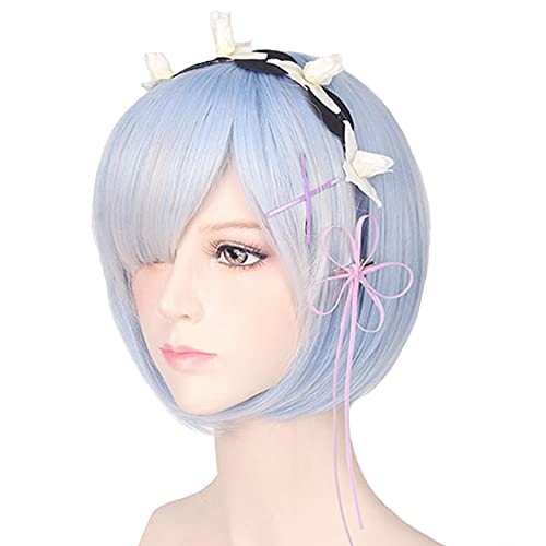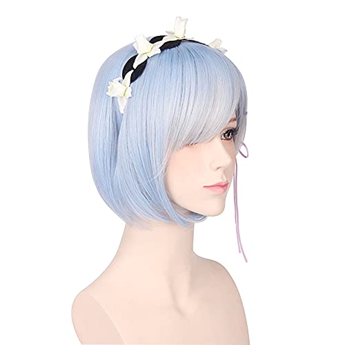 MIKLL Parrucca Cosplay Anime, Parrucca Re Zero Starting Life in Another World, con Cappuccio Parrucca Gratuito, per Halloween, Festa, Carnevale(Blue Short Bob REM/Pink Short Bob RAM Parrucca)