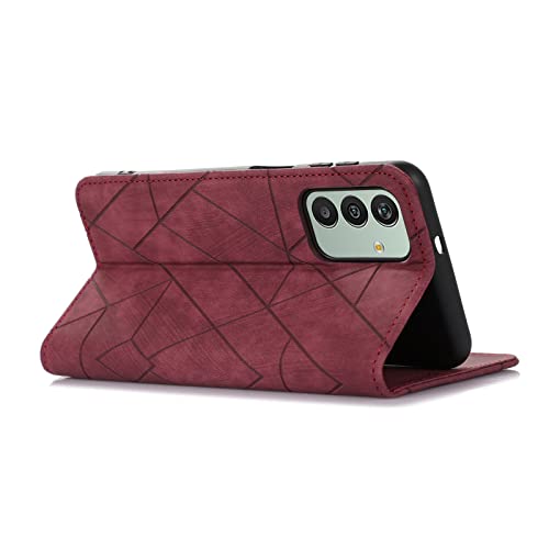 MIKULLE Cover Samsung Galaxy M13 4G Libro,Custodia in Magnetica Flip PU Portafoglio per Samsung Galaxy M13 4G - Rosso