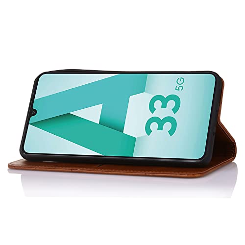 MIKULLE Cover Samsung A33 5G Libro Flip Custodia in Magnetica Folio PU Pelle Portafoglio per Samsung A33 5G-Marrone