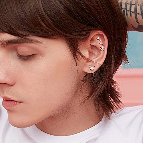 MILACOLATO 18G 10Pcs Orecchini a Bottone con Cartilagine in Acciaio Inossidabile CZ per Donna Uomo Orecchini con Luna e Stelle Conch Forward Helix Tragus Daith Piercing Jewelry