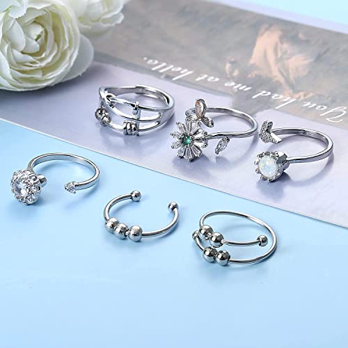 Milacolato 6Pcs Anelli da Donna Fidget Spinner Ring Cubic Zirconia Flower Spinner Girevole Fidget Rings Regolabile