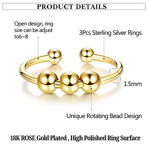 Milacolato Anello con Perle Donna Teen Ragazze Uomo Agitarsi Anelli Spinner per Anelli da Dito, Anelli Regolabili Sottili Perline Filanti Anelli Regolabili in Acciaio Chirurgico