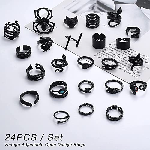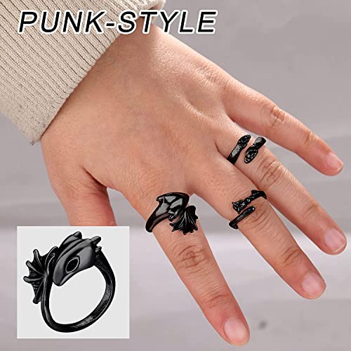 Milacolato Aperto Vintage Punk Anelli per Le Donna Uomo Regolabile Vintage Punk Anelli Drago Serpente Anello Fresco Gotico Impilabile Anello Aperto Set di Gioielli Argento Nero