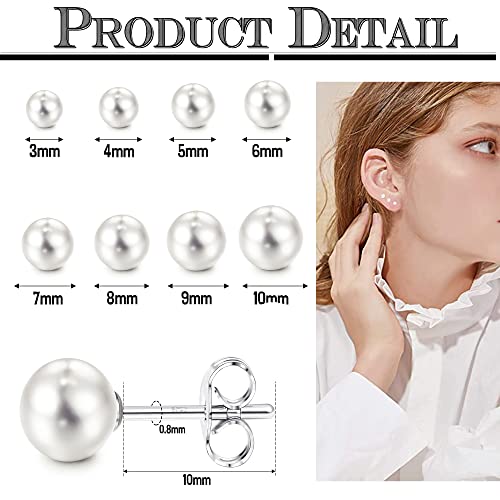 Orecchini di perle in argento sterling 925 - Orecchini di perle coltivate d'acqua dolce da 3-10 mm, puoi scegliere la combinazione di dimensioni preferita, argento sterling 925 ipoallergenico, larghezza dell'orecchio degli orecchini: 0,8 mm, lunghezza degli orecchini: 1 cm
