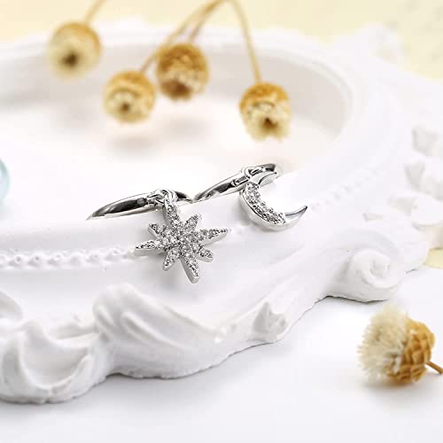 MILACOLATO 12 Paia Orecchini a Cerchio Ciondoli per Donna Piccoli Huggies Orecchini a Cerchio da Donna Stella Lunare CZ Orecchini a Bottone Minuscolo Evil Eye Bar Set di Orecchini a Cerchio a Catena