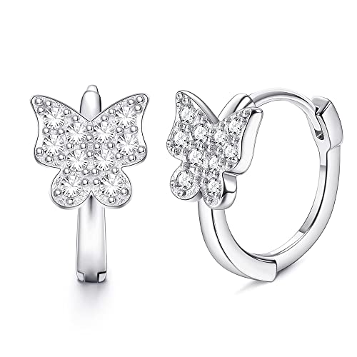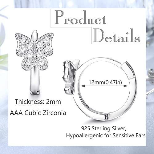MILACOLATO Orecchini a Cerchio Huggie Dormiente in Argento 925 per Donna 12 mm Orecchini a Cuore Piccolo/Farfalla/Stella/Malocchio/Luna Cartilagine Orecchini Cerchio Gioielli