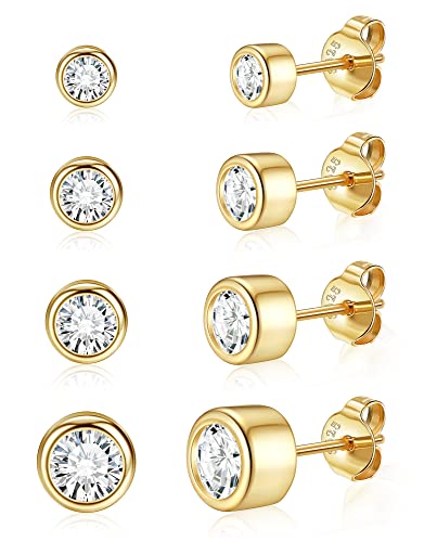 MILACOLATO Set di 4 Paia Orecchini Donna Argento 925 di Orecchini in Argento Sterling 925 Cubic Zirconia Piccoli Orecchini a Bottone in Argento Per Donne/Ragazze Bambini 2/3/4/5 mm