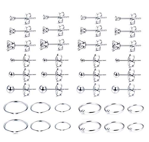 Milacolato 30 Pairs Orecchini in Acciaio inossidabile per Donne Uomini Cubic Zirconia Rotondo Piccolo Palla Cerchio Orecchini Set