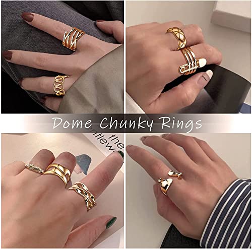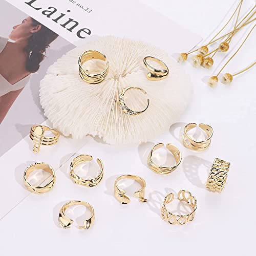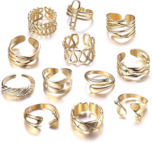 Milacolato 12 Pezzi Set di Anelli Apertiper Donna Uomo Anelli con Sigillo Intrecciati Intrecciati a Cupola Anelli di Dichiarazione Minimalista Regolabili Set di Anelli per Pollice Impilabili Oro