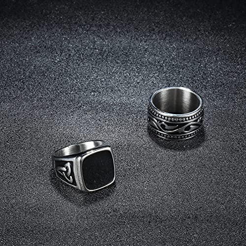 Milacolato 4 Pezzi Anelli Sigillo Acciaio Inossidabile Uomo Donna Banda Sigillato Anello della Catena Anello Quadrato Incisione Sigillo Anelli Chiave Inglese Anelli Vintage Rock Gotico Anello