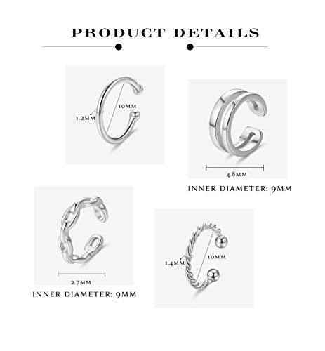 Milacolato 4 pezzi Argento Sterling 925 Polsino Dell'orecchio Piccolo Cerchio Della Cartilagine Anello Naso Naso Labbra Gioielli di Moda Regolabile per le Donne Orecchini non Penetranti