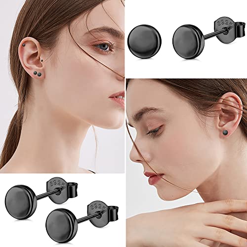 MILACOLATO 4 Paia Piccoli Orecchini a Bottone Argento Sterling 925 Donna Uomo Set di Piccoli Orecchini a Bottone Rotondi a Disco Orecchini a Trago di Cartilagine per Ragazze (2-5 mm) Nero