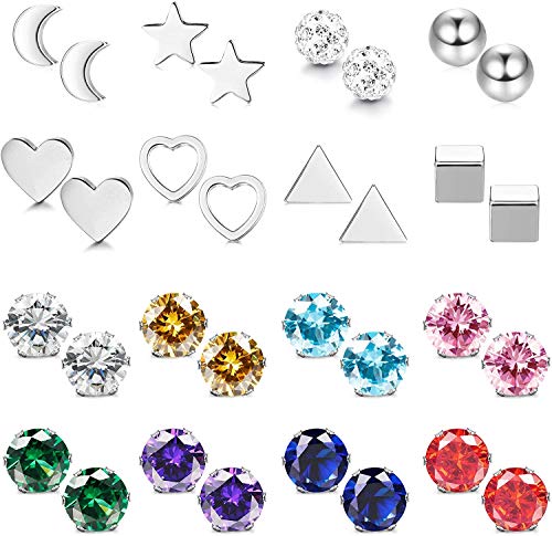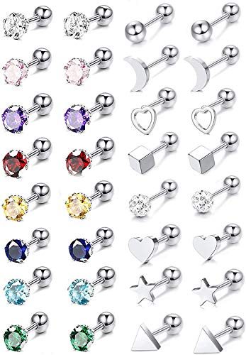 SET DI ORECCHINI DI CARTILAGINE CONVENIENTI: vieni con 16 paia di piercing alla cartilagine un set, inclusi piercing con bilanciere CZ, orecchini a forma di elica con luna / stella / cuore / triangolo ecc. Posizionare in modo sicuro.