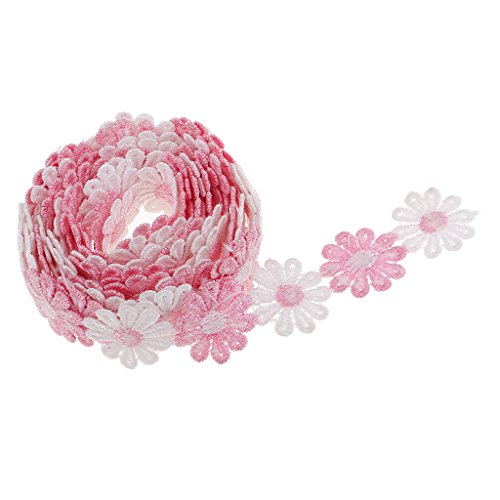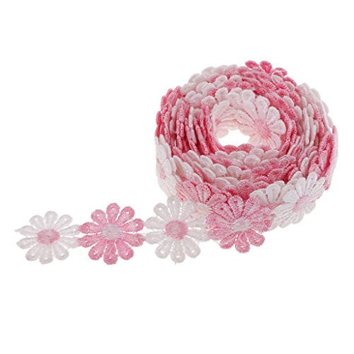 Milageto 3 Cantieri Lungo 1 inch Larghezza Bianco E Giallo Margherita Fiore Pizzo Trim Nastro Fiore Applique Cucito Sartoria Orli Passamaneria Fai da Te Donne - Rosa Bianco, 3 Yard
