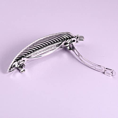 Milageto Fermaglio per Capelli Celtico Convesso Grande Stile Vintage Mollette per Capelli Francesi - Piuma d'argento