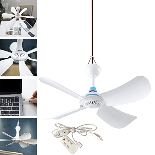 Milageto Ventilatore da soffitto piccolo Telecomando Ventilatori sospesi unici Ricarica USB Ventilatore durevole Stile Silenzioso per