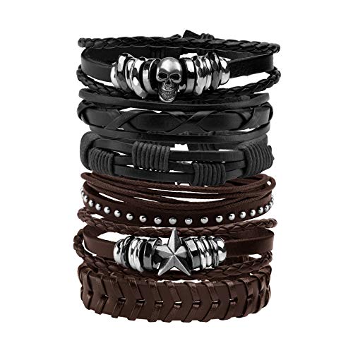 MILAKOO Bracciale in Pelle Bracciale Intrecciato Nero Bracciale Donna Uomo Gioielli Punk