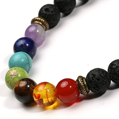 Milakoo, braccialetto elastico con pietre laviche dei 7 chakra da 8 mm, per yoga, 7 pezzi, colore: D: 4 PCS Set, cod. POSET00010