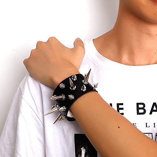 MILAKOO 2 PC Bracciali con livrea nera Bracciali con borchie punk rock Bracciali larghi in pelle Bangle Cuff